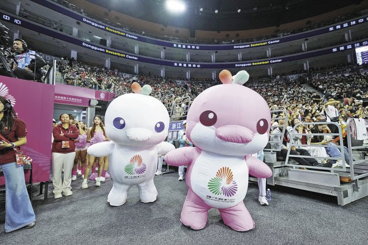 11月5日,记者刚一踏入广州白云机场的抵达大厅,认识便被两只憨态可掬的“小海豚”紧紧诱导——清翠的体态、灵动的色彩,十五运会安闲物“喜滋滋”与“乐融融”温暖地舆睬着八方来客。这份理睬,并不啻于机场。从地铁车厢到街灯灯杆,从建筑围挡到公交车身,乃至超市的货架之间,“喜滋滋”与“乐融融”的身影无处不在。